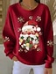Dame Genser med genser Grafisk julenissen Fritid Langermet Crew-hals Vanlige topper Gate Avslappet Ferie Trykt mønster Svart Vin Rød Vår Høst Vinter
