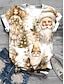Jul Dame T skjorte Grafisk julenissen Årgang Stilfull Klassisk Kortermet Crew-hals Rund hals Vanlige topper Daglig Trykt mønster Lysegrønn Lysebrun Brun Grønn Høst Vinter