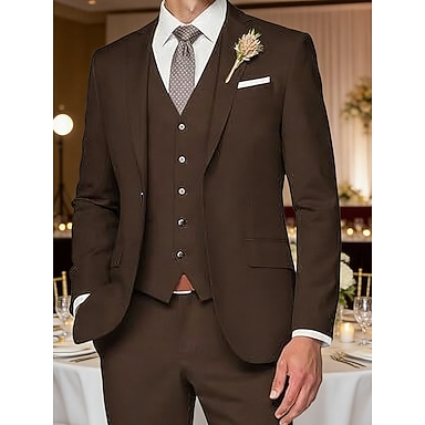 Herre Blazer + Vest + Kjolebukser Blazer Virksomhet Arbeid Bryllup Mote Gatemote Høst Vinter Terylene عادي 3 deler Enkeltkneppet Blazer Svart Champagne Rosa Kakifarget