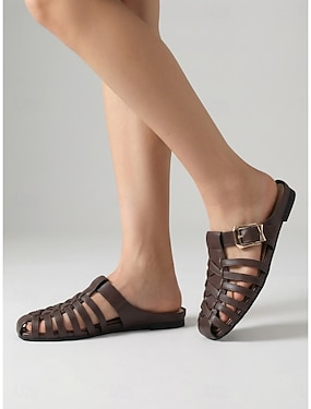 Gladiatorsandaler med lukket tå til dame – vevde romerske sko med lav hæl og stropper til cruiseferie, byvandring og sommerreiser