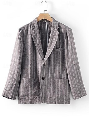 100% Lin Herre Blazer i lin Blazer Virksomhet Formell kveld Bryllupsfest Mote Fritid Vår & Vinter Stribe Lomme Fritid / hverdag Enkeltkneppet Blazer Hvit Navyblå kaffe