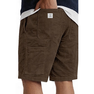 Herre Cargoshorts Shorts Sommershorts Corduroy shorts Multi lomme Klapplomme عادي Komfort Anvendelig Knelengde utendørs Sport Daglig Mote Fritid Svart kaffe