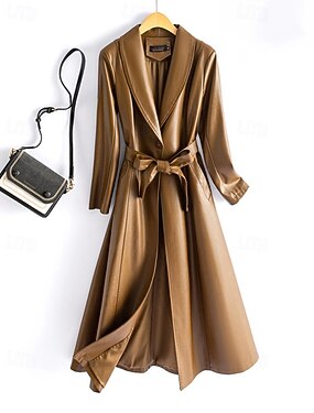 Dame Lærjakker Trenchcoat Bekvem Knapper Fritid عادي utendørs Feriereise Ferie Ut på byen Lang Aftæpning Normal Langermet Yttertøy Svart Vin Kamel Vår Høst