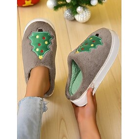 Damesko med juletre-plysj – varme fleece-innendørssko for vinter, høytid og avslapning hjemme