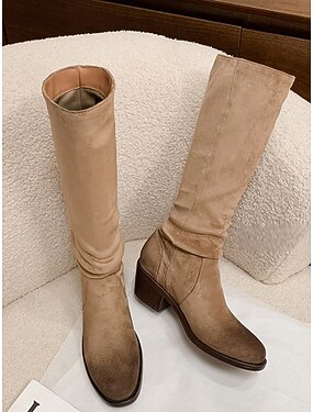 flate, knehøye støvletter for kvinner, fritidsstøvler i imitert semsket skinn i flere farger for høst- og vinterbruk