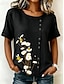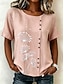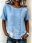 Dame Bluse Knapper Trykt mønster Blomstret Grafisk Årgang Tropisk Stilfull Kortermet Crew-hals Vanlige topper Avslappet Ferie Blå Svart Rosa Lilla Grønn Sommer Vår