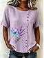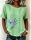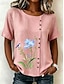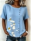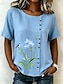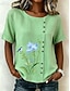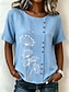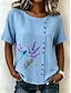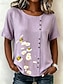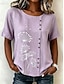 Dame Bluse Knapper Trykt mønster Blomstret Grafisk Årgang Tropisk Stilfull Kortermet Crew-hals Vanlige topper Avslappet Ferie Blå Rosa Lilla Grønn Sommer Vår