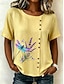 Dame Bluse Knapper Trykt mønster Blomstret Grafisk Årgang Tropisk Stilfull Kortermet Crew-hals Vanlige topper Avslappet Ferie Blå Hvit Gul Lilla Grønn Sommer Vår