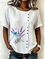 Dame Skjorte Knapper Trykt mønster Dyr Sommerfugl Stilfull Moderne Langermet V-hals Vanlige topper Daglig Ferie Hvit Grå Sommer