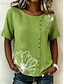 Dame Bluse Skjorte i imitert lin Knapper Trykt mønster Blomstret Årgang Stilfull Fritid Kortermet V-hals Vanlige topper Daglig Blå Lilla Grønn Lyseblå Sommer Vår