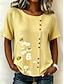 Dame Bluse Knapper Trykt mønster Blomstret Grafisk Årgang Tropisk Stilfull Kortermet Crew-hals Vanlige topper Avslappet Ferie Blå Svart Gul Lilla Kakifarget Sommer Vår