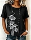 Dame T skjorte Henly-skjorte Utskjæring Knapper Trykt mønster Grafisk Grunnleggende Neon og lyst Kortermet V-hals Vanlige topper Daglig Helg Blå Lilla Grønn