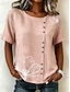 Dame T skjorte T-skjorte Drapering Knapper عادي Mote Stilfull Klassisk Kortermet V-hals Vanlige topper Daglig Ut på byen Helg Blå Svart Hvit Rosa Kakifarget Sommer Vår