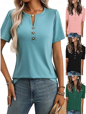 Dame Skjorte Bluse T-skjorte Lapper Knapper عادي Elegant Ferie Årgang Kortermet V-hals Vanlige topper Daglig Ferie Ut på byen Blå Svart Rosa Oransje Grønn Sommer Vår