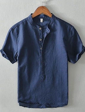 Herre Skjorte Linskjorte Popover skjorte Uformell skjorte Bomullsskjorte عادي Feriereise Gate Hvit Kongeblå Himmelblå Lysegrå Kortermet Båndkrage Sommer Klær Knapp ned