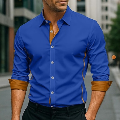 Herre Skjorte Sateng skjorte Dresskjorter Uformell skjorte Skjorte med knapper Ballskjorte عادي Formell Ytelse Lyseblå Svart Kongeblå Gull Langermet Knaphul Alle årstider Klær