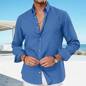 Herre Linskjorte Sommerskjorte Strand Klær Uformell skjorte Skjorte med knapper عادي Feriereise Curise Svart Hvit Rosa Kongeblå Langermet Knaphul Vår sommer Klær