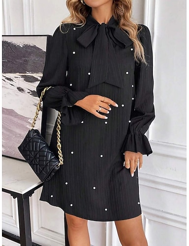 Dame Mini kjole Svart kjole Blonde kjole Mote Moderne Puffermer Daglig Kontor Feriereise Normal عادي Langermet V-hals Svart Hvit Rød Vår Høst