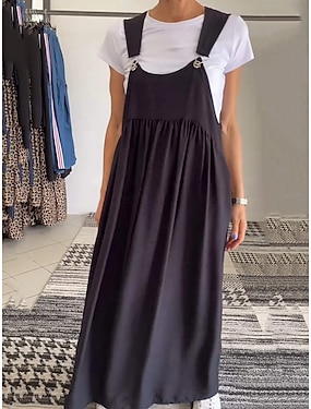 dame midikjole i imitert bomullslin sommerkjole avslappet daglig løs passform ensfarget ermeløs halterneck blå svart hvit gul sommer