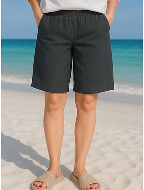 Dame Imitert bomullslin Shorts Bukser Sommershorts Gatemote Fritid Kort Naturlig عادي Lomme Elastisk snordesign comfy Bekvem Gate Ut på byen Grå Marine Svart Hvit Sommer Normal