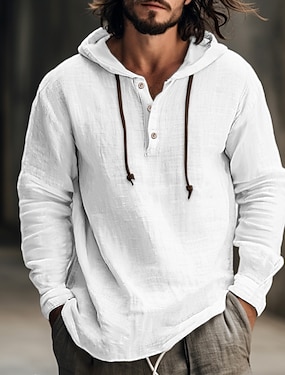 Herre Skjorte Linskjorte Strand Klær Skjorte med knapper Skjorte med hette عادي Feriereise Avslappet Svart Hvit Blå Grønn Langermet Med hette Høst Vår sommer Klær Knapper