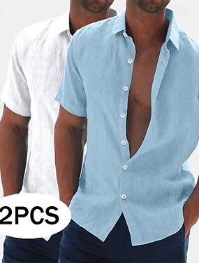 Herre Skjorte Linskjorte Sommerskjorte Strand Klær Skjorte med knapper عادي Feriereise Avslappet Hvit + Grønn Grønn + rosa Hvit+marineblå Rosa + marineblå Kortermet Aftæpning Sommer Klær Multipakke