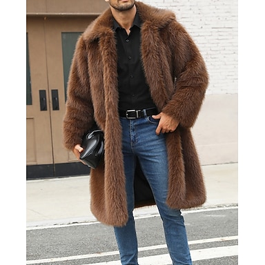 Herre Vinterjakke Fuskepels Feriereise Daglig Hold Varm Fleece Vinter عادي Mote Gatemote Knaphul Lang Gul Jakker