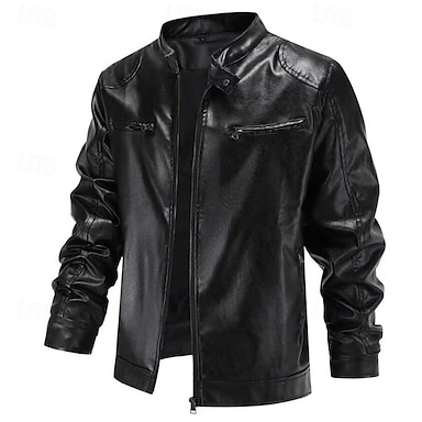 Herre Lærjakker Overgangsjakke utendørs Vindtett jakke Lomme Alle årstider عادي Gatemote Høy krage Normal Imitert Lær Svart Brun Jakker