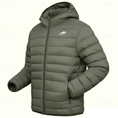 Herre Grafisk Okse Vinterfrakk Dunjakke Pufferjakke Hold Varm Regn-sikker Lettvekt Fritid utendørs Daglig Polstret, quiltet hettejakke Høst Vinter Langermet Svart Rød Militærgrønn