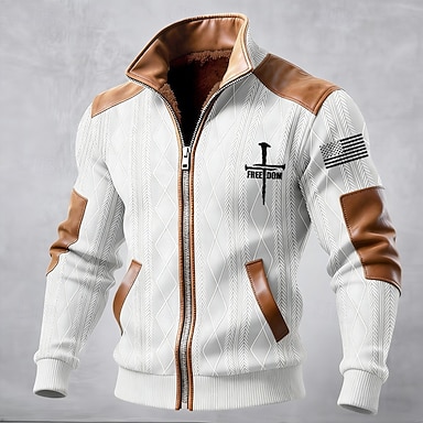 Herre Vinterfrakk Fleece-jakke Uformell jakke Daglig utendørs Hold Varm Jacquard Lomme Høst Vinter Flagg Fargeblokk Gatemote Daglig Høy krage Normal Svart Hvit Kakifarget Militærgrønn Grå Jakker