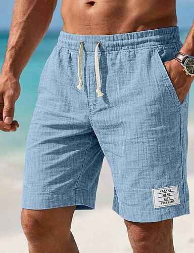 Herre Shorts Lin Shorts Sommershorts Strandshorts Snorer Elastisk midje عادي Komfort Pustende Knelengde utendørs Strand Ferie Ferie Designer Blå Hvit Uelastisk