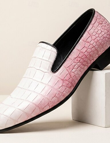 menns hvite og rosa krokodillepregede mule-loafers slip-on motesko elegant statement-fottøy for bryllupsgjester, banketter, fester, skoleball og kveldsarrangementer