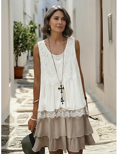 Dame Mini kjole Blonde kjole Solkjole Hvit kjole Fritid Feriereise Gate Ferie Normal Ermeløs Crew-hals Hvit Sommer