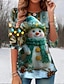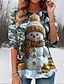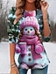 Jul Dame T skjorte Grafisk Snømann Mote Fritid Langermet Crew-hals Rund hals Vanlige topper Daglig Helg Trykt mønster Rosa Gull Grønn Sommer Vår Høst Vinter