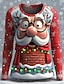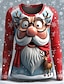 Jul Dame T skjorte Grafisk julenissen Mote Fritid Langermet Crew-hals Vanlige topper Daglig Helg Trykt mønster Hvit Rød Blå Sommer Vår Høst