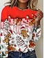 Dame Genser med genser Grafisk Reinsdyr Fritid Langermet Crew-hals Rund hals Vanlige topper Gate Avslappet Ferie Trykt mønster Rosa Rød Blå Oransje Vår Høst Vinter