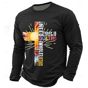 Herre Jesus Tro Kristen T skjorte Langermet T skjorte 3D-utskrift Crew-hals Skjorte Mote Daglig Grunnleggende Gate Avslappet Daglig Svart Rød Blå Sommer Vår Klær S M L XL XXL XXXL