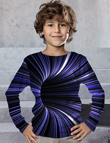 Gutt 3D Grafisk 3D Print T skjorte T-skjorte Langermet 3D-utskrift Sommer Vår Høst Sport Mote Gatemote Barn 3-12 år utendørs Avslappet Daglig Normal