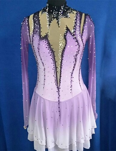 Kjole til kunstløp Dame Jente Skøyteløp Kjoler Lilla Lapper Åben Ryg Spandex Netting Høy Elastisitet Trening Profesjonell Konkurranse Skøyteklær Klassisk Krystall / Rhinstein Langermet Skøyting