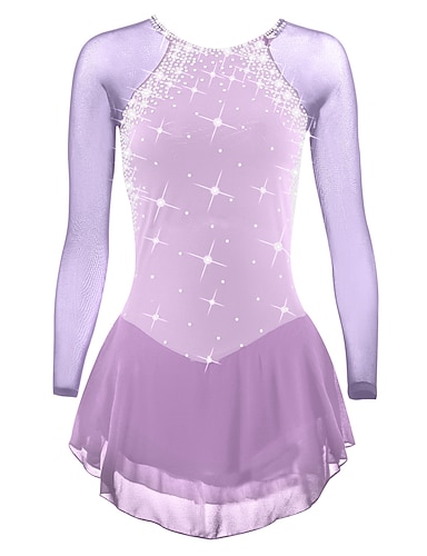 Kjole til kunstløp Dame Jente Skøyteløp Kjoler Lilla Tommelhull Åben Ryg Netting Høy Elastisitet Trening Konkurranse Skøyteklær Klassisk Krystall / Rhinstein Langermet Skøyting Kunstløp