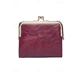 Rød damelommebok i kunstskinn med kysselås og glidelås, flere kortspor, stilig vintage-design for daglig bruk, shopping og uformelle utflukter