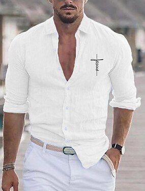 Herre Skjorte Linskjorte Hvit bomullsskjorte Uformell skjorte Skjorte i bomullslin Bomullsskjorte Kors Feriereise Hawaiisk Svart Hvit Rosa Grå Langermet Knaphul Vår & Vinter Klær Knapp ned