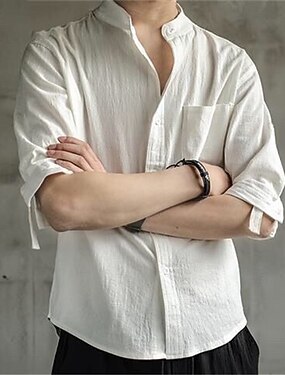 Herre Skjorte Linskjorte Popover skjorte Uformell skjorte Bomullsskjorte عادي Feriereise Hawaiisk Svart Hvit Aprikos Grå 3/4 ermer Båndkrage Sommer Vår Klær Knapp ned