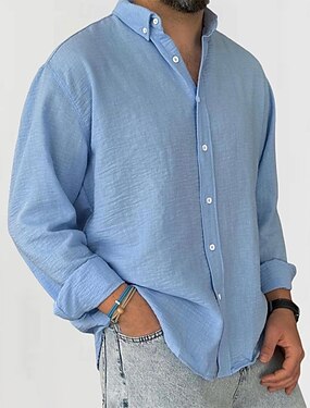 Herre Skjorte i bomullslin عادي Feriereise Dagligdagstøy Svart Hvit Rosa Kongeblå Langermet Skjortekrage Vår & Vinter Klær Knapp ned