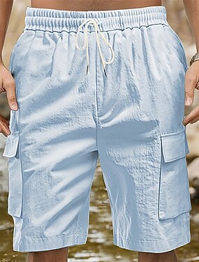 Herre Shorts Lin Shorts Sommershorts Strandshorts Snorer Elastisk midje Multi lomme عادي Komfort Pustende Kort Feriereise Ferie Strand Hawaiisk Bohem Svart Hvit