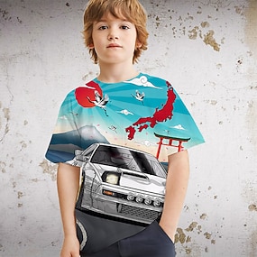 Gutt 3D Grafisk T skjorte Kortermet 3D-utskrift Sommer Vår Aktiv Sport Mote Polyester Barn 3-12 år utendørs Daglig Normal