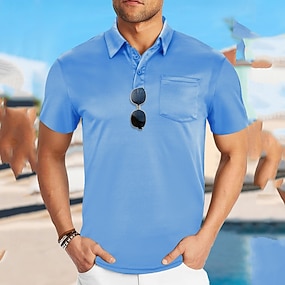 Herre Polo Poloskjorter Avslappet Feriereise Knaphul Kortermet Mote Moderne عادي Lomme Knapper Sommer Vår Normal Svart Hvit Vin Navyblå Kakifarget Grå Polo