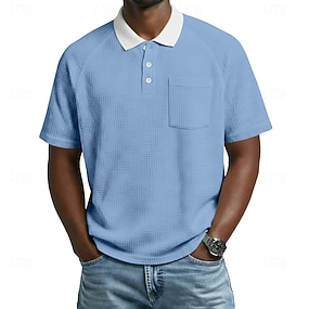 Herre Vaffel poloskjorter Med Tekstur Avslappet Klassisk Kortermet Mote Bekvem Fargeblokk Lomme Raglan Ermer Sommer Vår Vår sommer Normal Svart Hvit Lysegrønn Navyblå Lilla Kakifarget Vaffel