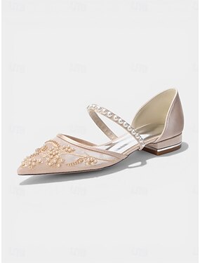 damesko med champagnefargede broderte perlestropper – elegante dresssko til cocktailfesten