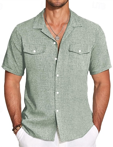 herreskjorte i linskjorte sommerskjorte strandskjorte sommer hawaiiskjorte ensfarget fritid daglig blå svart hvit lysegrønn kortermet krage vår &sommer sommerklær lappeteppe